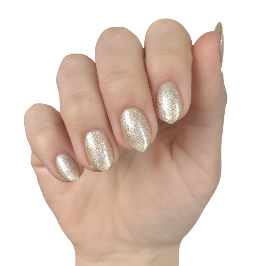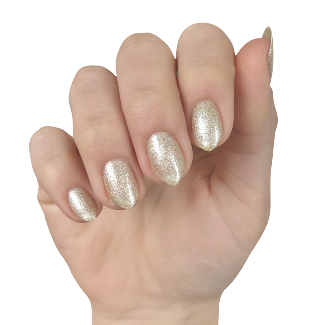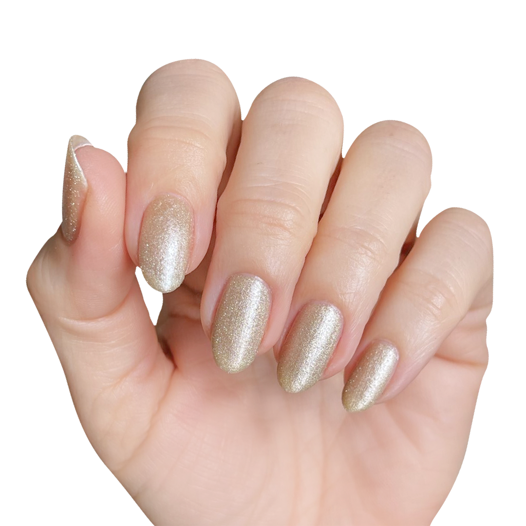 The silvery-gold sheen of this sheer polish is out-of-this-world.
